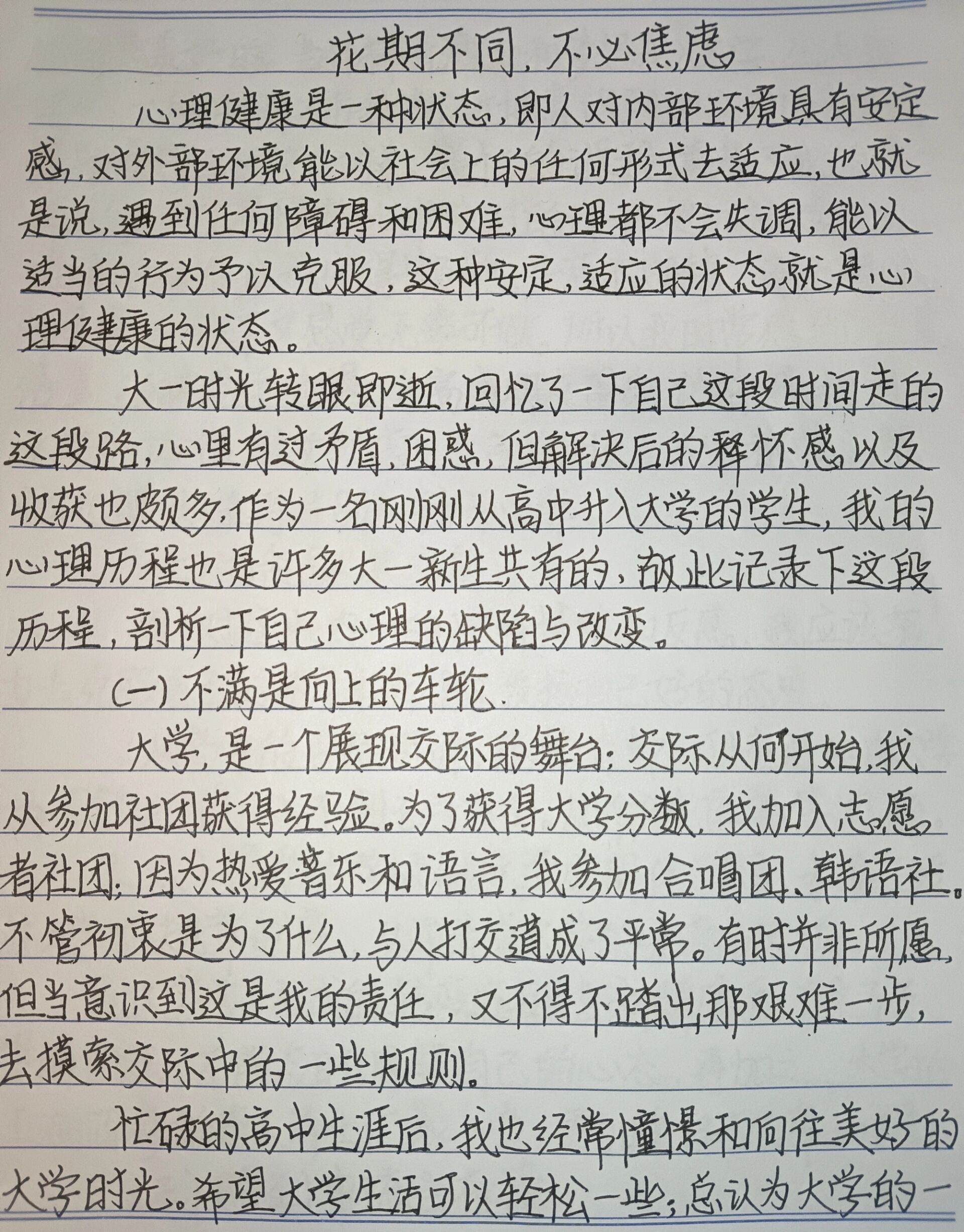 心理健康课程期末论文怎么写大学生心理论文